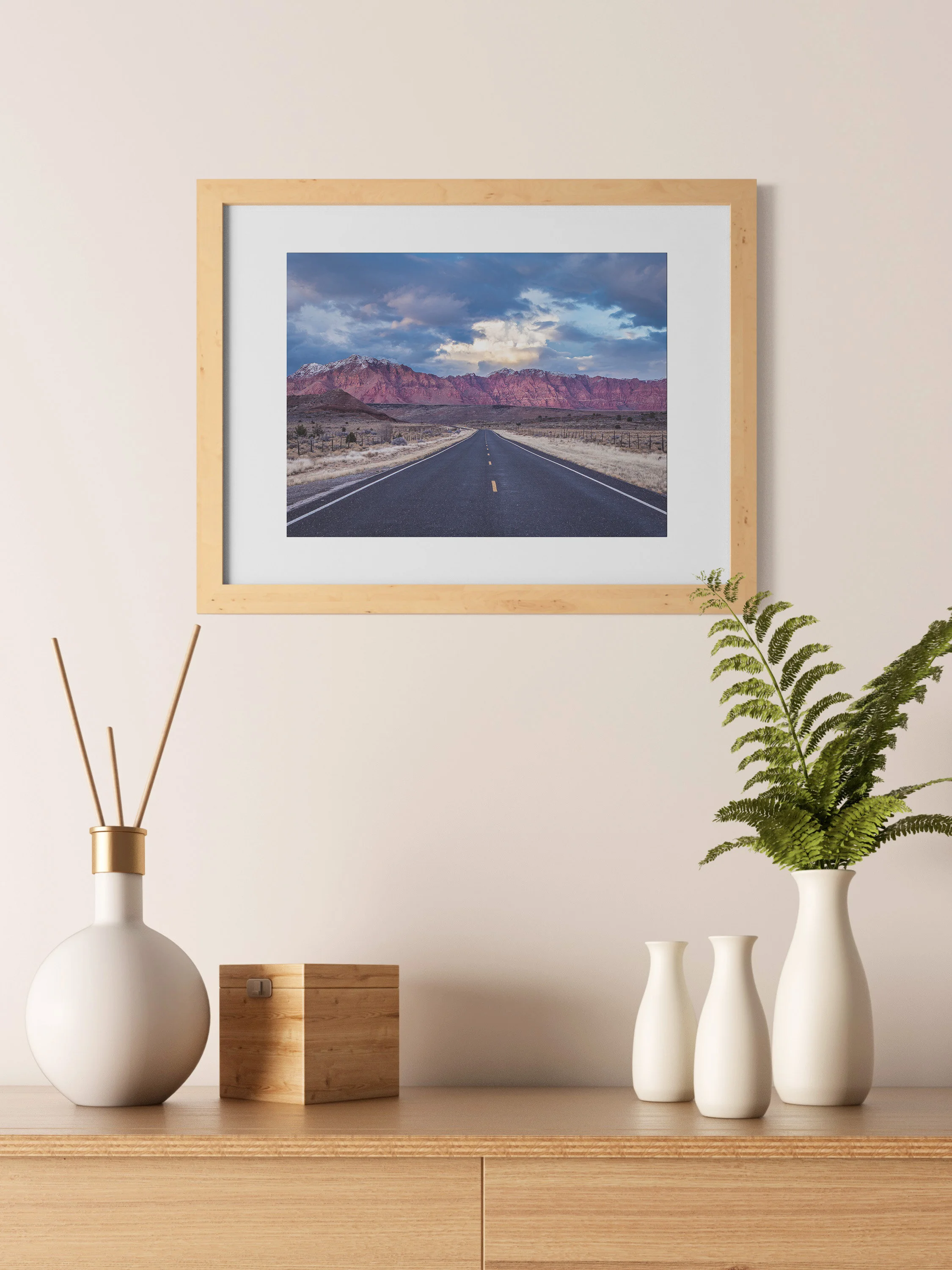 Also available on 24 x 36 x 1.5 Gallery Wrap Canvas here: https://www.etsy.com/listing/790787764/desert-mountain-road-sunset-photograph?ref=shop_home_active_1&frs=1