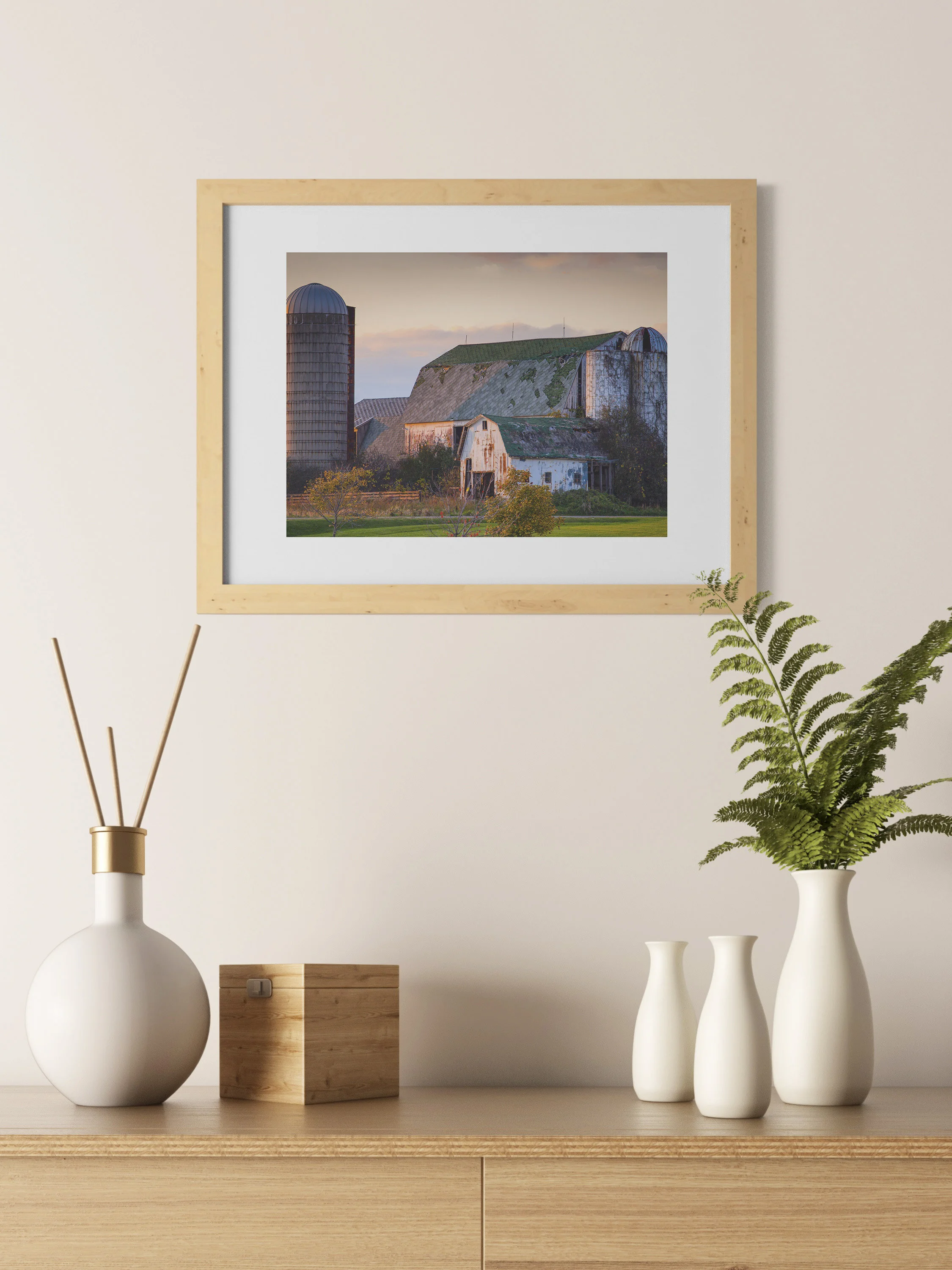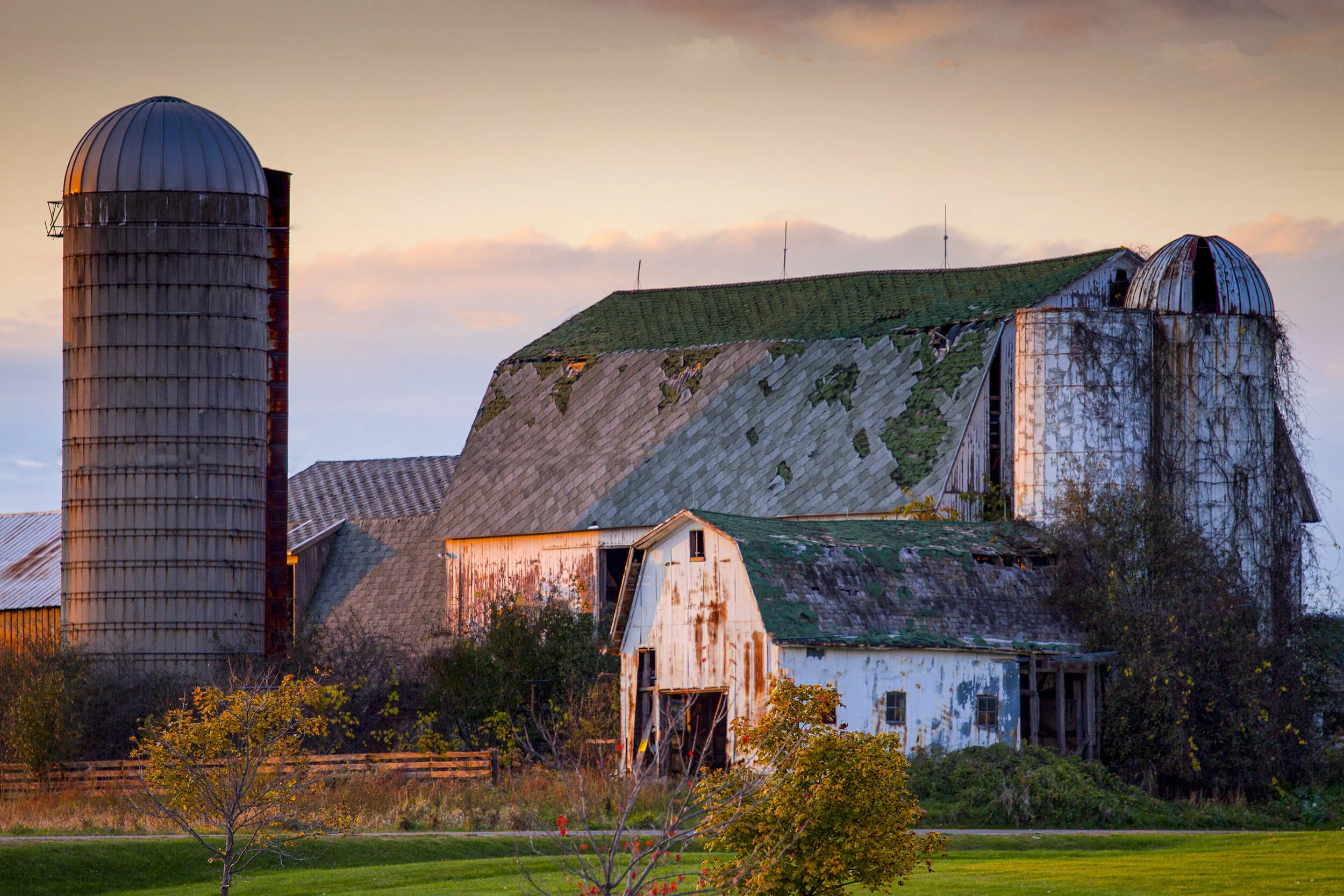 This barn is located just south of Ann Arbor, Michigan. I have driven past it for the better part of fifteen years, watching it deteriorate a little more each year. As anyone from the area would recognize, this photograph is actually about eight years old - as of now the barn has all but collapsed. This image was created on a late October evening, just before sunset. I have this print displayed in my office on a 16 x 24 black edge canvas wrap, a medium which I prefer for this type of subject.