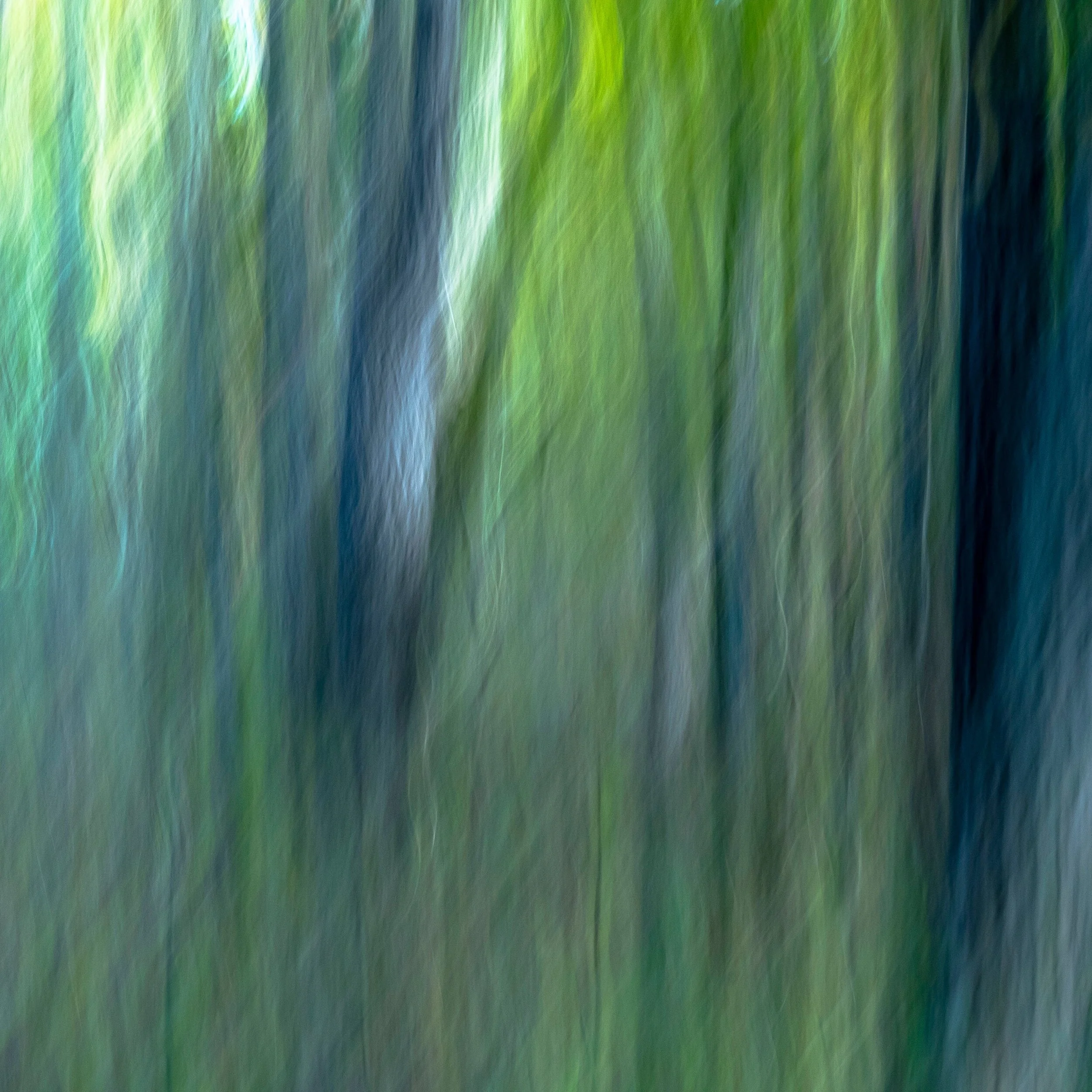 Abstract photograph of a small woodland in the autumn. The image attempts to isolate the shape and form of the tree trunks and branches using ICM or Intentional Camera Movement. With the aperture open, a slight camera movement is used to change the look and texture of the scene, while retaining the natural shapes and identity.